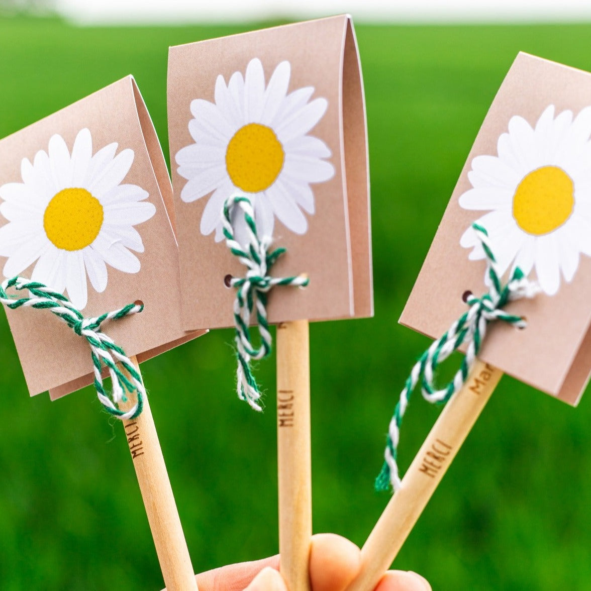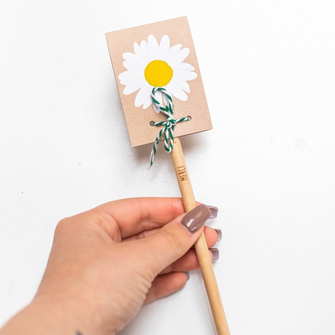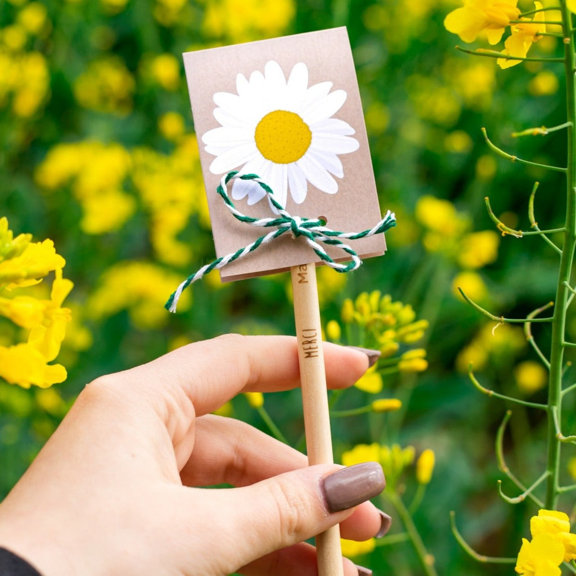 Ce crayon à papier en bois de cèdre contient une capsule de graines à son extrémité. Quand le crayon devient trop court, il suffit de planter le crayon dans la terre, de l’arroser et voir la plante germer.