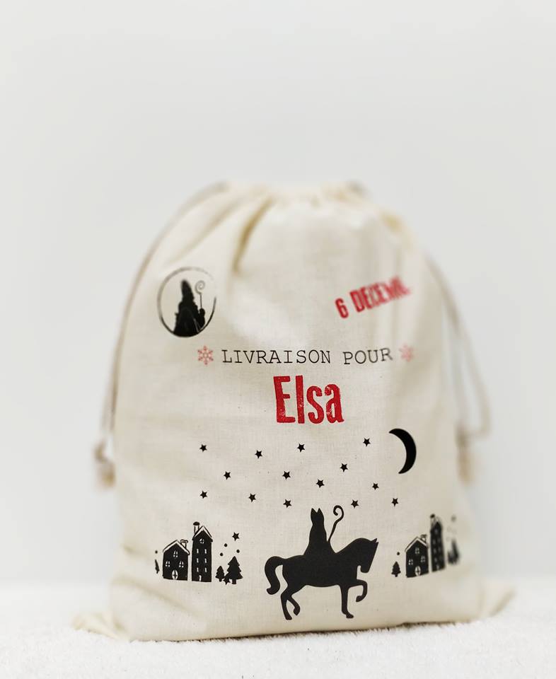 Illustrée d’un joli dessin de Saint Nicolas, cette hotte 100 % coton accueille les friandises et petits cadeaux déposés par le grand Saint dans la nuit magique.